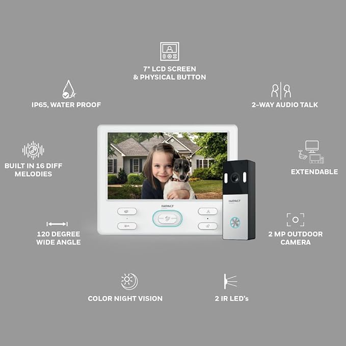 IMPACT by Honeywell Analog Video Door Phone/Bell with 7″ TFT LCD Screen & Physical ButtonI 1080p ResolutionI 2-Way Audio Talk I IR Night Vision with Color LED’s I BuiltIn Mic & Loudspeaker(I-HVDP-SB01)