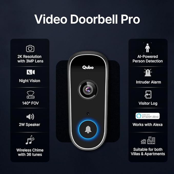 Qubo Instaview New Age Doorphone from Hero Group | Video Doorbell Pro 2K + Home Tab | Instant Phone & Tab Visitor Video Call | 3MP 1296P Resolution | 2Way Talk | Alexa & OK Google | Chime |2024 Launch